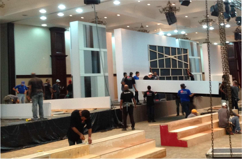 Construímos e montamos cenários corporativos para exposições, palestras, eventos com shows, festas e standes em feiras.